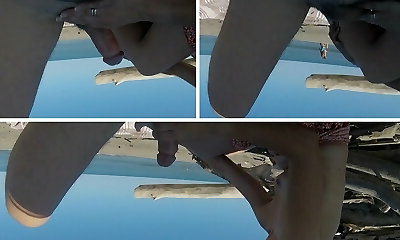 Mature beach wank