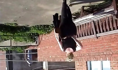 I commenced masturbating on the balcony but every now and then the neighbors interrupted my joy